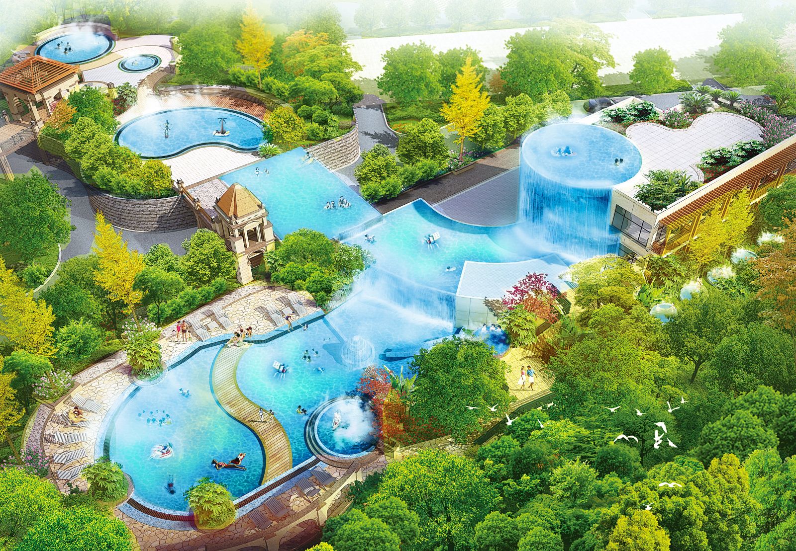 项目拥有3000多平米的温泉景观区,有各色温泉池20余个,包括一栋三层楼的温泉中心、“架空透明水晶温泉池”、“天际温泉瀑布”、私密小池、温泉SPA、康疗中心、游泳池等;温泉池从山坡向下呈重叠延伸状布设;温泉区与15亩山地公园相连,山地公园里种植有名贵树木,铺设有登山小道通向山林,山林中坐落着休闲休息的凉亭。